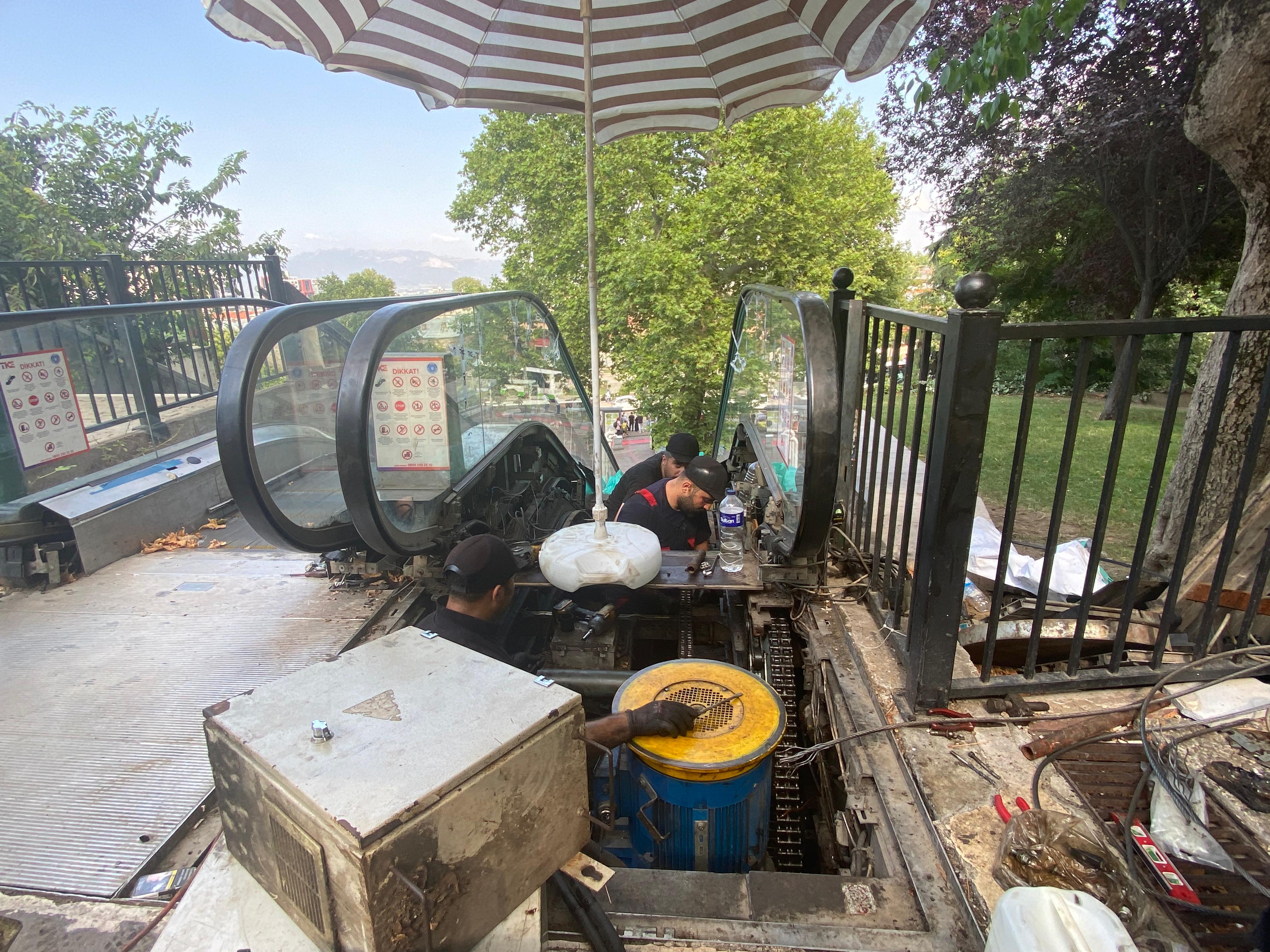 Balibey Han’ın yan tarafında hizmet veren yürüyen merdivenlerden son zamanlarda yüksek ses gelmesi üzerine Bursa Büyükşehir Belediyesi tarafından çalışma başlatıldı. Vatandaşların güvenliğini riske atmamak adına yürüyen merdivenler geçici olarak hizmet dışı bırakıldı. Vakit kaybetmeden tamir işlemlerine başlayan Büyükşehir ekipleri, ilk olarak ana tahrik şaftının rulmanlarını ve yataklarını komple yeniledi. Çalışmaları tamamlanma aşamasına gelen yürüyen merdivenlerin aşağı yönünün bugünden itibaren hizmete alınması planlanıyor.