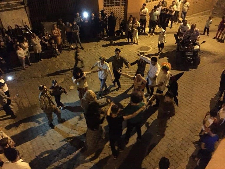Kurban Bayramı’nda geleneksel olarak düzenlenen ‘Deve Oyunları’ etkinliklerinde doktor, imam, cadı, ayı, asker, davulcu, kız gibi figürlerden oluşan oyun ekibi, ev ev dolaşarak mahalle sakinlerine renkli ve eğlenceli anlar yaşattı. Bazı çocuklar cadı, ayı gibi figürlere korkarak yaklaşırken bazıları da eğlencenin tadını çıkarmayı tercih etti.