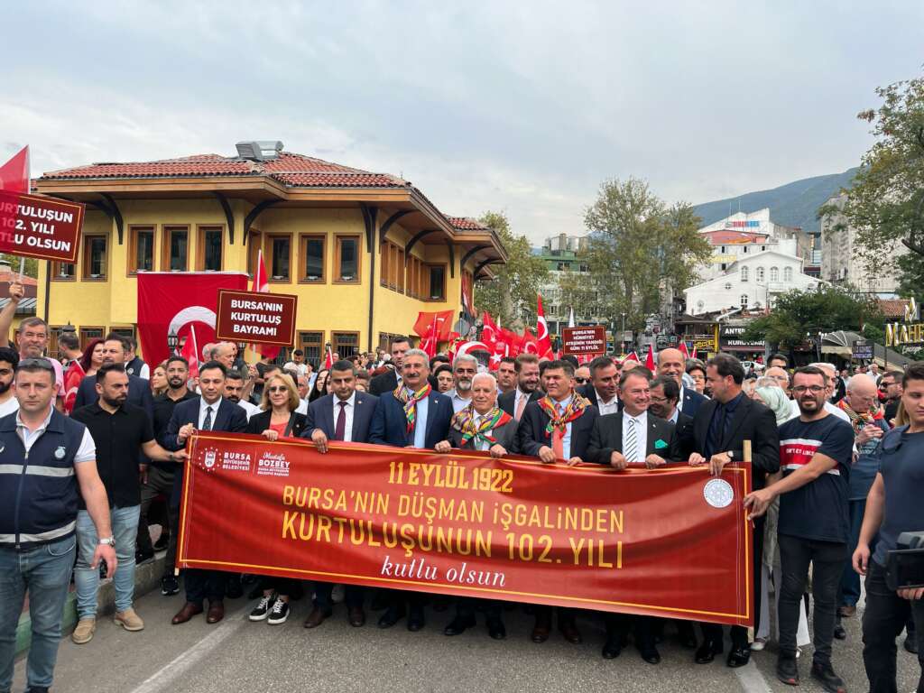 Kortej yürüyüşünün ardından Tarihi Bina’da konuşma gerçekleştiren Bursa Büyükşehir Belediye Başkanı Mustafa Bozbey, “Bundan tam 102 yıl önce Bursa’mızı saran özgürlük sevincini yüreklerimizde hissediyoruz. Bu heyecanla adım adım gelen zafer için yürüdük. Bursa’nın kalbi o günkü gibi atıyor. Her sokakta yankılanan, her yürekte büyüyen halkımızın destanını, Bursa’mızın kurtuluşunu kutluyoruz. 11 Eylül 1922’ye kadar işgal altında kaldı Bursa. Bursa’nın işgalinde meclis yastaydı. İşgal karanlığı ülkemizi kaplamıştı. Ulu Önder Gazi Mustafa Kemal Atatürk’ün talimatıyla yıllar sürecek direniş başladı. Türk ordusunun kararlı ilerleyişi, Bursa halkının verdiği özgürlük mücadelesiyle 11 Eylül 1922’de düşman güçleri çekilmeye başladı. Haber, Ankara’ya ulaştı ve kara örtü kaldırıldı. 11 Eylül sabahı esaret zincirine kıran güneşe selam durdu Bursa halkı. 11 Eylül 1922 tarihi Bursa’mızın yeniden doğduğu tarihtir. Ülkemizin kaderini değiştiren mücadelenin sonucudur. Zafer, milletimizin karar ve azmiyle kazanılmıştır. Ulusal direnişin en büyük simgelerinden olan bu zaferi her zaman hafızalarımızda yaşatacağız. Milletimizin kararlılığı ile yenilmez denilen ordular yenildi. Bu toprakların nasıl imkansızlıklar içinde kurtarıldığının farkındayız. Bugün burada yine ortak bir gelecek umuduyla buluştuk. Bağımsız bir Bursa için birlik ve beraberlik içerisinde çalışacağız. Atalarımızın mücadelesiyle kazanılmış bu topraklar için mirasımızı korumak boynumuzun borcudur” ifadelerini kullandı.