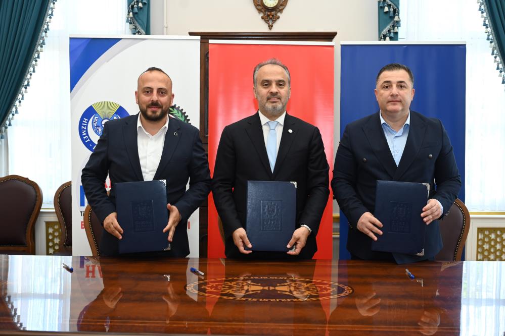 Konuşmaların ardından toplu iş sözleşmesi, Büyükşehir Belediye Başkanı Alinur Aktaş, Hizmet-İş Sendikası Genel Başkan Yardımcısı İdris Ersoy ve sendikanın 2 Nolu Şube Başkanı Enes Şeker arasında imzalandı.