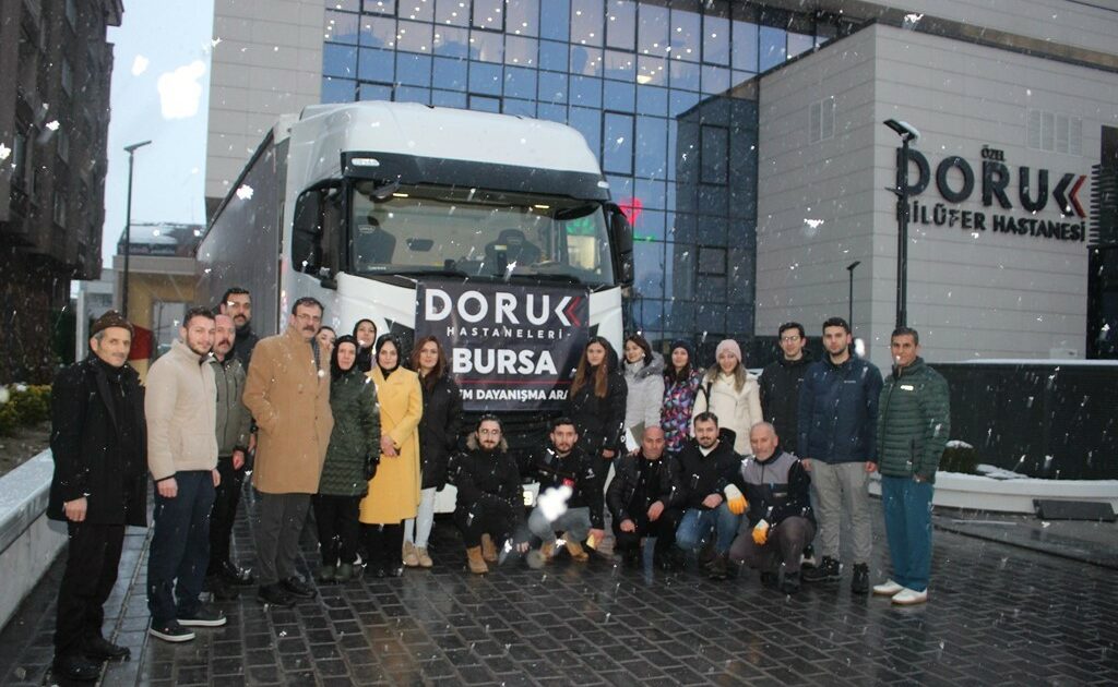 Doruk Nilüfer Hastanesi’nde toplanarak AFAD ve Kızılay ile koordineli bir şekilde Hatay Sahra Hastanesi’ne gönderilen sağlık malzemeleri arasında, serumlar, sarf malzemeleri ve çocuk bezleri ile değişik hastalıkların tedavisinde kullanılan ilaçların yanı sıra Hatay Sahra Hastanesi’nin elektrik ihtiyacını karşılayacak 57 kVA’lık bir jeneratör bulunuyor.