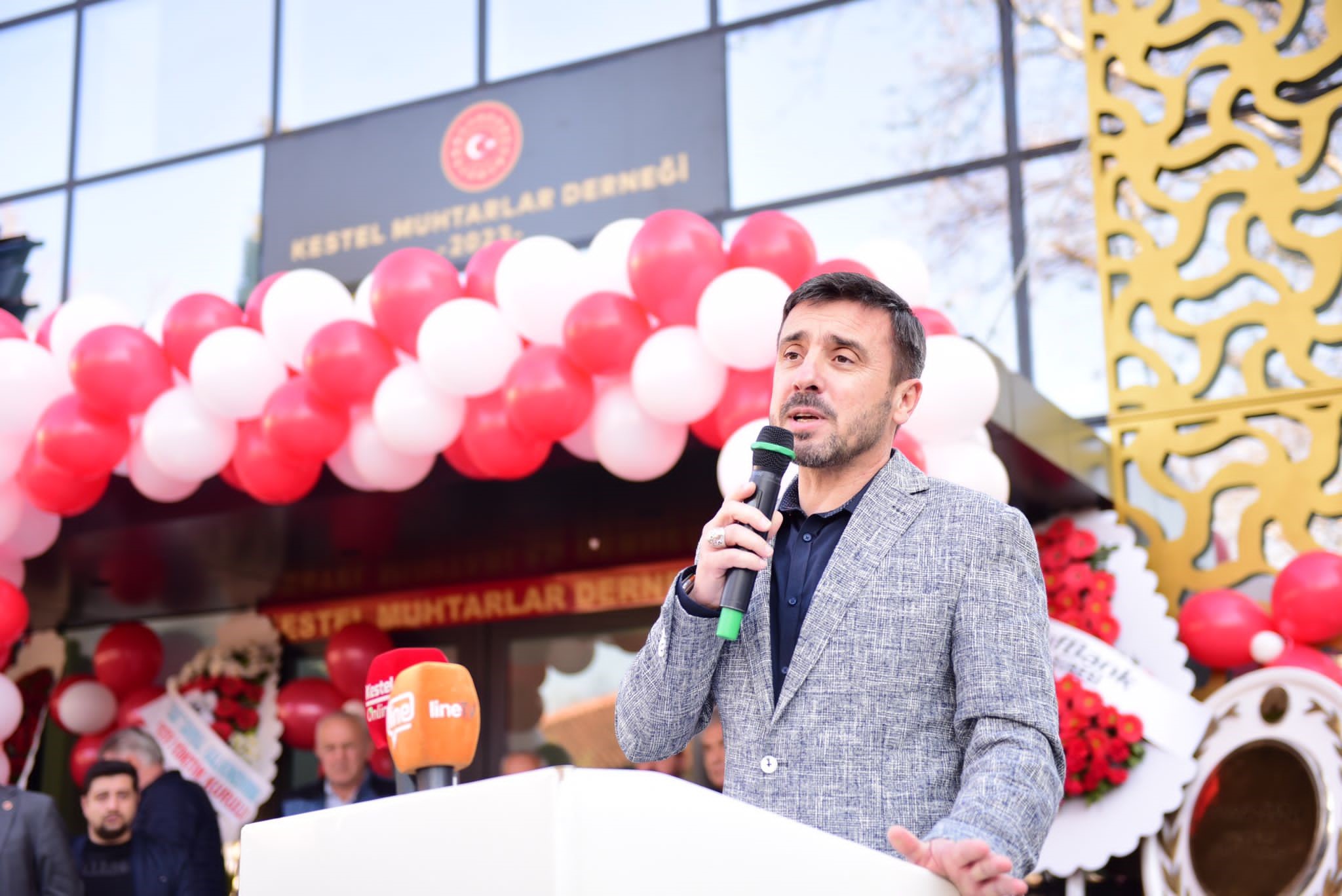 Derneğin açılışında konuşan Kestel Kaymakamı Recep Öztürk, ” Vatandaşımızın devlete en sıcak ulaşan eli, en yakın idare birimi olan muhtarlarımız bölgelerimizdeki, geliştirdiğimiz projelerin köylerimize, mahallelerimize ulaşmasında bizlerle her zaman işbirliği içinde olmuşlardır. Bizlere her zaman yardımcı olmuşlardır. Muhtarlık gerçekten fedakarlık özveri isteyen bir mühessesedir. Bu açıdan hepsini ayrı ayrı tebrik ediyorum. Bu binamızın ilçemize kazandırılmasında en büyük emeği olan başta Belediye Başkanımıza teşekkür ediyorum. Bu binamızın ilçemize hayırlı olmasını diliyorum” dedi.