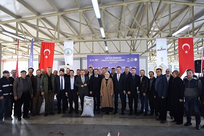 Konuşmalarından ardından protokol üyeleri tarafından çiftçilere kiraz, badem, ceviz fidanı ve korunga tohumları teslim edildi.