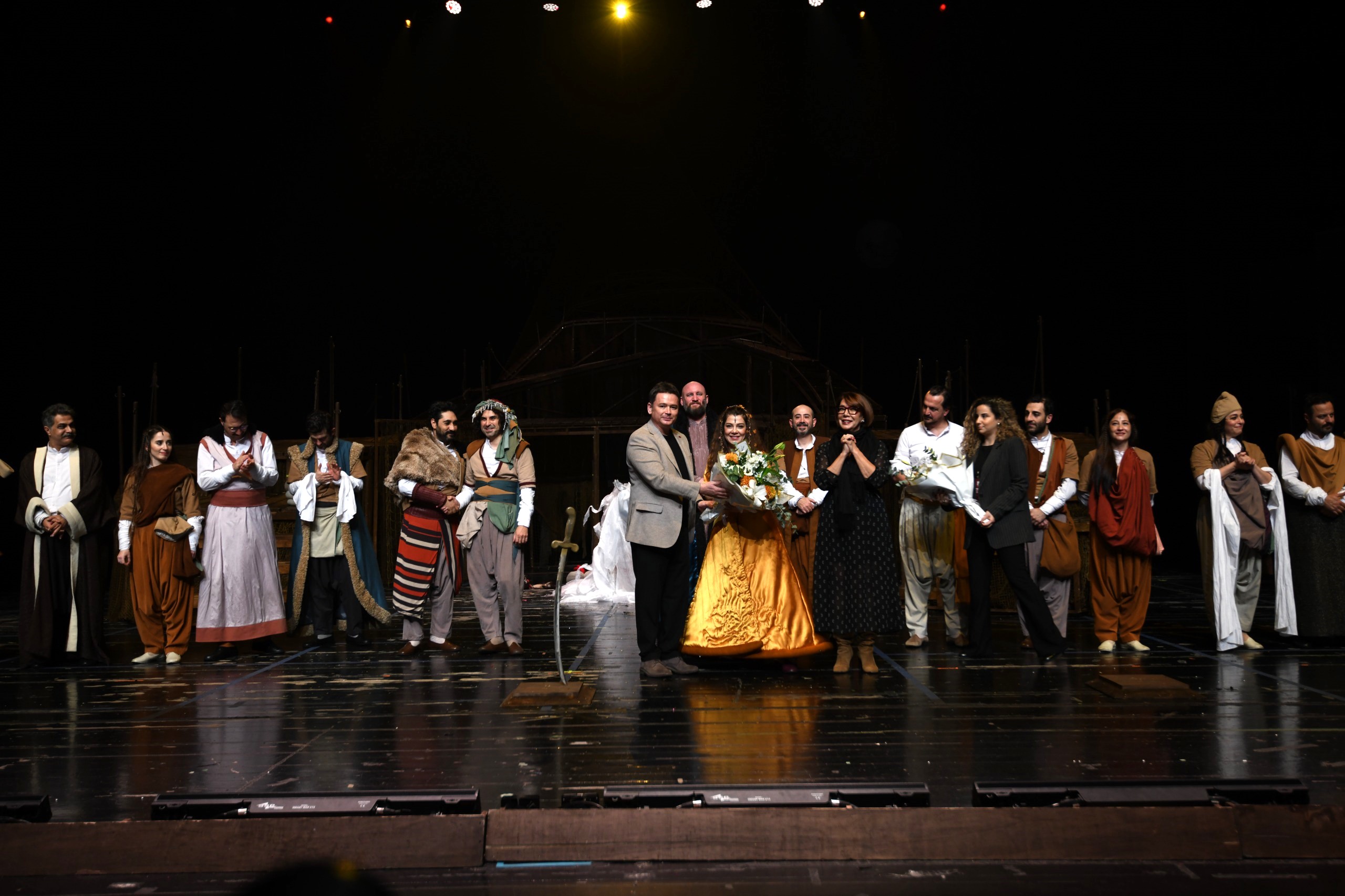 Osmangazi Belediye Başkanı Erkan Aydın, sanatseverleri oyuncu ekibiyle birlikte selamlarken, İstanbul Büyükşehir Belediyesi (İBB) Şehir Tiyatroları ekibine de çiçek takdiminde bulundu.