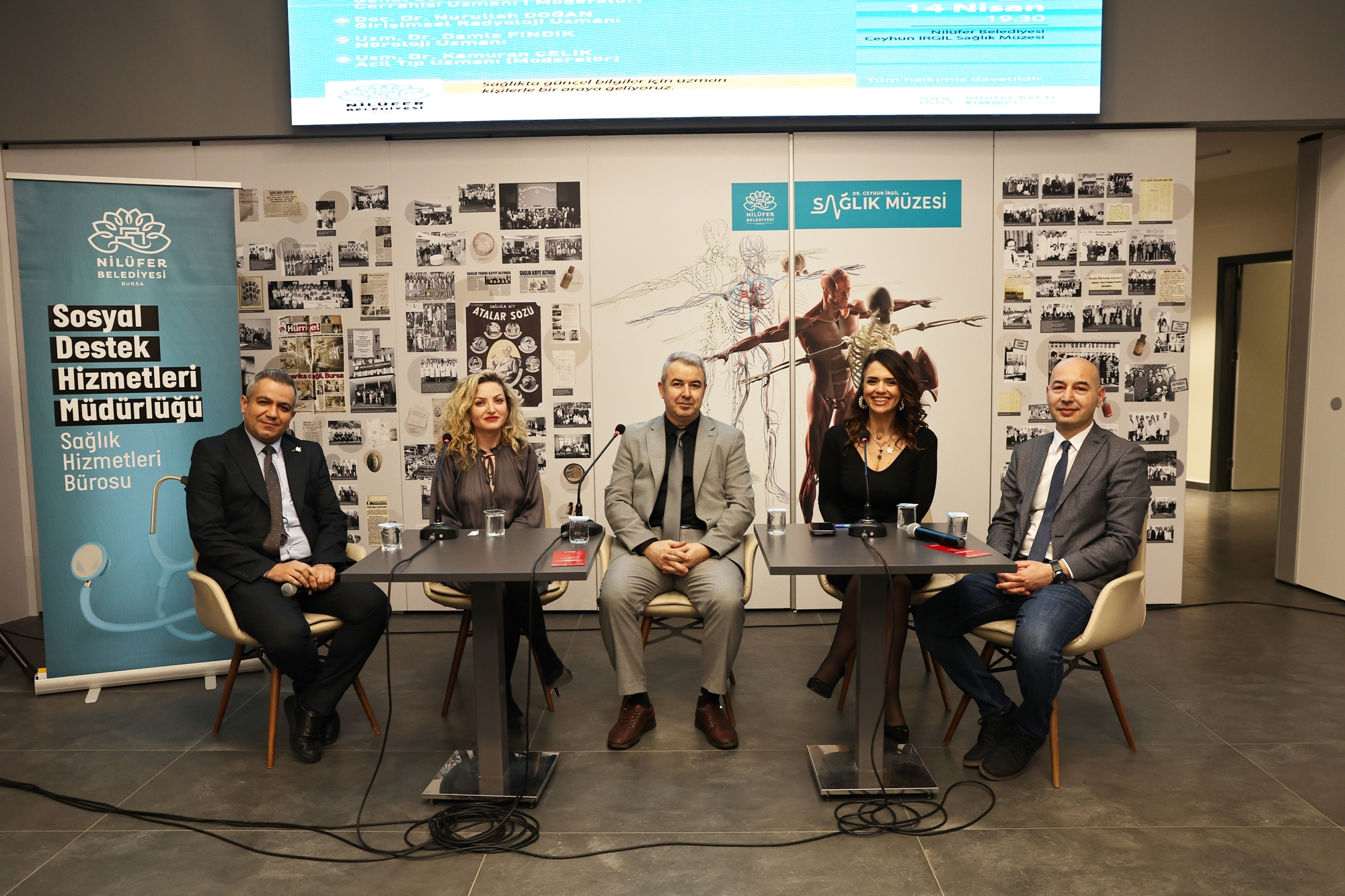 Nilüfer Belediyesi Dr. Ceyhun İrgil Sağlık Müzesi’nde düzenlenen söyleşide Prof. Dr. Murat Çaycı ve Uzm. Dr. Kamuran Çelik moderatörlüğünde, Prof. Dr. Özlem Arıcan, Doç. Dr. Nurullah Doğan ve Uzm. Dr. Damla Fındık, kalp sağlığı ile ilgili bilgilendirmelerde bulundu.