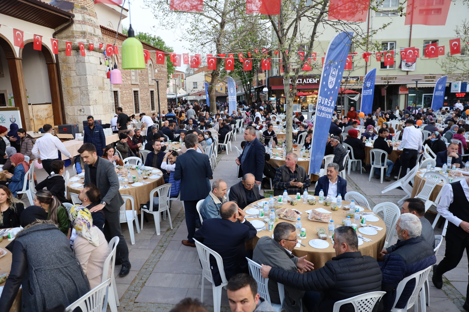 Ramazan ayının manevi iklimini düzenlediği programlarla tüm şehirde yaşatan Bursa Büyükşehir Belediyesi, geleneksel iftar programını bu kez Yenişehir İlçesi Çınarlı Camii önünde düzenledi. İlçe halkının yoğun ilgi gösterdiği programa Bursa Büyükşehir Belediyesi Başkanvekilleri Süleyman Çelik ve Ahmet Yıldız, Yenişehir Belediye Başkanı Davut Aydın ve AK Parti İl Başkanı Davut Gürkan da katıldı. İftar öncesi Meddah ve Karagöz gölge oyunu gösterisi, çocuklara keyifli anlar yaşattı. Kur’an-ı Kerim tilavetinin okunduğu programda, akşam ezanıyla birlikte vatandaşlar hep birlikte oruçlarını açtı.